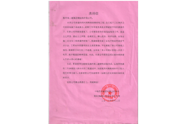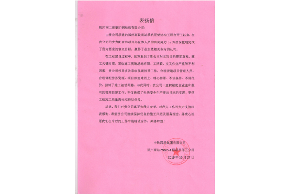 項(xiàng)目部管理人員嚴(yán)格按照施工要求,克難攻堅(jiān),精心組織,規(guī)范施工。公司鄭州南站項(xiàng)目部全體人員上下齊心,按照業(yè)主要求的時(shí)間節(jié)點(diǎn),圓滿完成各項(xiàng)既定目標(biāo),受到總包方表?yè)P(yáng)。