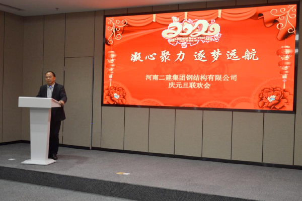 河南二建鋼構(gòu)總經(jīng)理張永慶代表公司對(duì)全體職工一年來(lái)為企業(yè)的建設(shè)與發(fā)展付出的努力表示衷心的感謝,并致以新年的問(wèn)候,同時(shí)希望在新的一年里,全體職工同心同德,齊心協(xié)力,共創(chuàng)佳績(jī)。