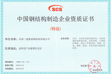142020.11鋼結(jié)構(gòu)公司成功晉升中國鋼結(jié)構(gòu)制造業(yè)特級資質(zhì) -