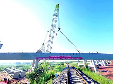河南二建集團(tuán)鋼結(jié)構(gòu)有限公司焦平高速新襄段跨禹登鐵路鋼箱梁工程首吊成功