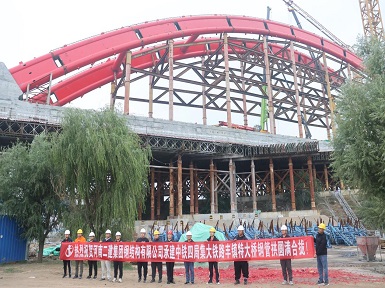 282023.09河南二建集團鋼結(jié)構(gòu)有限公司阿斯塔納市輕軌一期跨伊希姆河拱橋順利合龍 -
