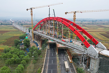 內(nèi)蒙集大鐵路豐鎮(zhèn)特大橋鋼管拱橋工程位于內(nèi)蒙古豐鎮(zhèn)市,總長(zhǎng)144米,橫跨二廣高速公路,橋面寬18.5米,鋼管拱部最高達(dá)48.12米,拱肋外觀整體內(nèi)傾8,形似提籃式。 -