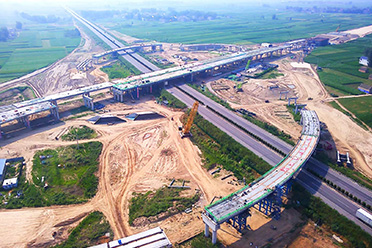 蘭考至太康段傅集樞紐互通鋼箱梁工程用鋼量約4200噸,采用步履式頂推施工。 -