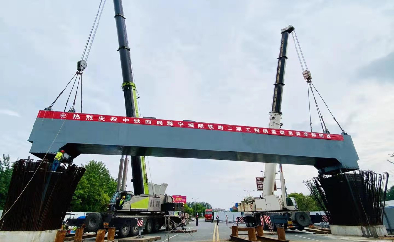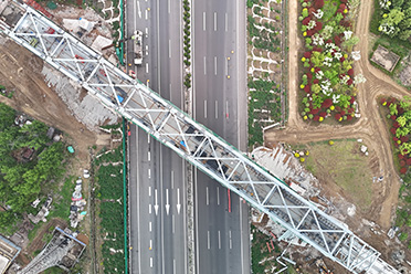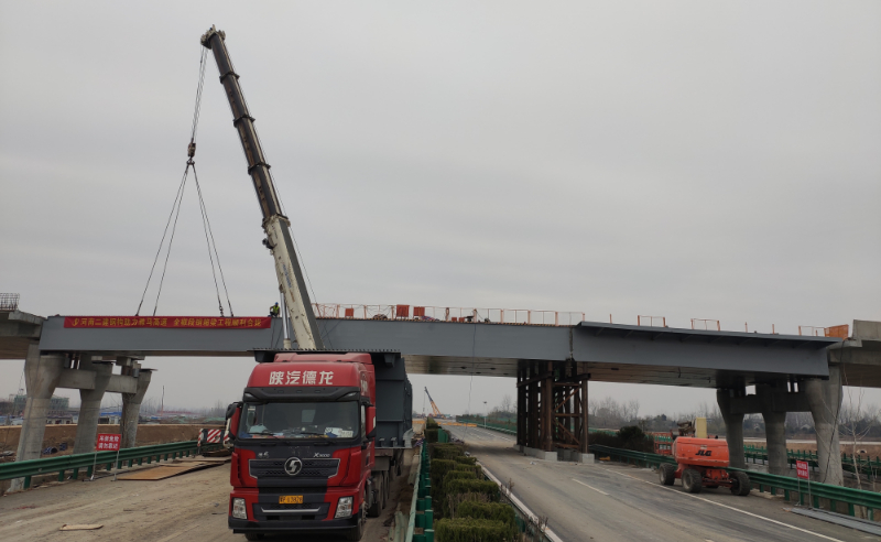 滁來全快速通道全椒段與滁馬高速公路互通立交工程橋?qū)?9m,長(zhǎng)55m,箱體鋼材材質(zhì)為Q345qD,總重量575.83噸;單節(jié)段最重47.19噸。 -